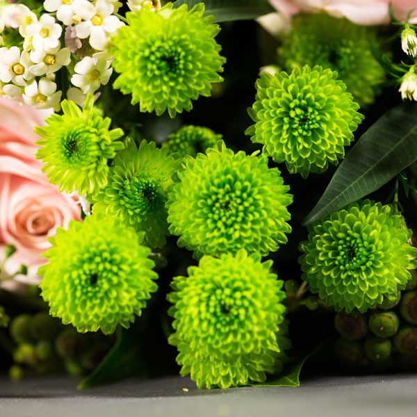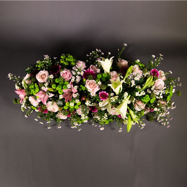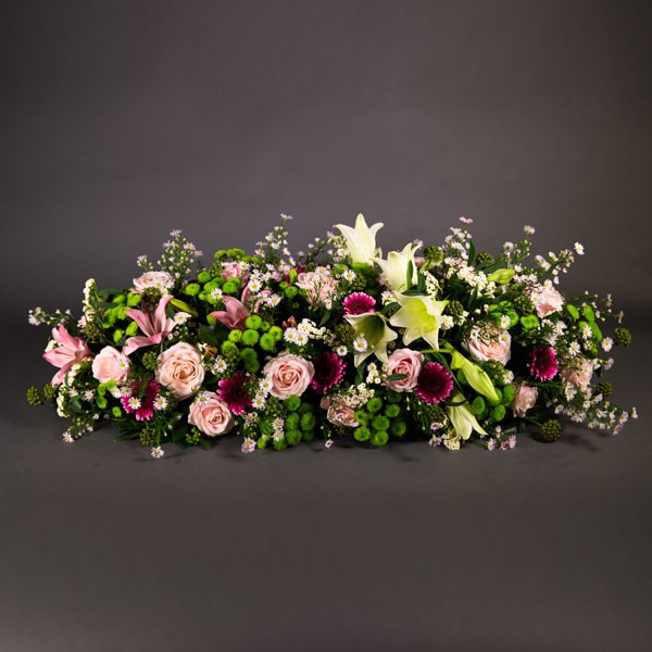 Très élégant dessus de cercueil réalisé dans un superbe camaïeu de tons pastel