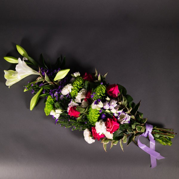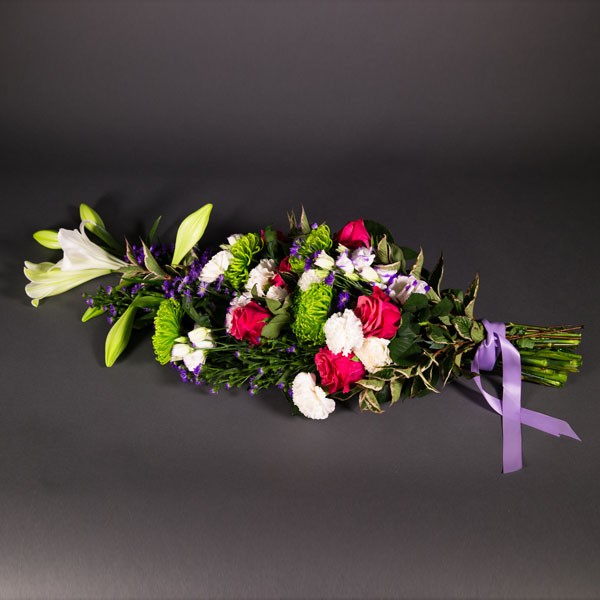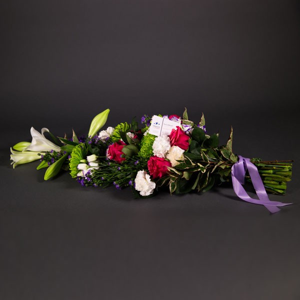 Très belle gerbe de deuil aux tons pastel. Une présentation élégante et classique pour témoigner tout votre soutien et toute votre affection.