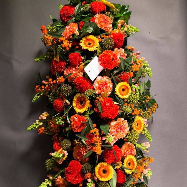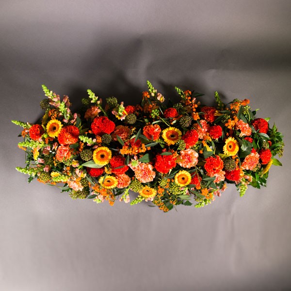 Très beau dessus de cercueil aux tons chauds pour témoigner toute votre affection.